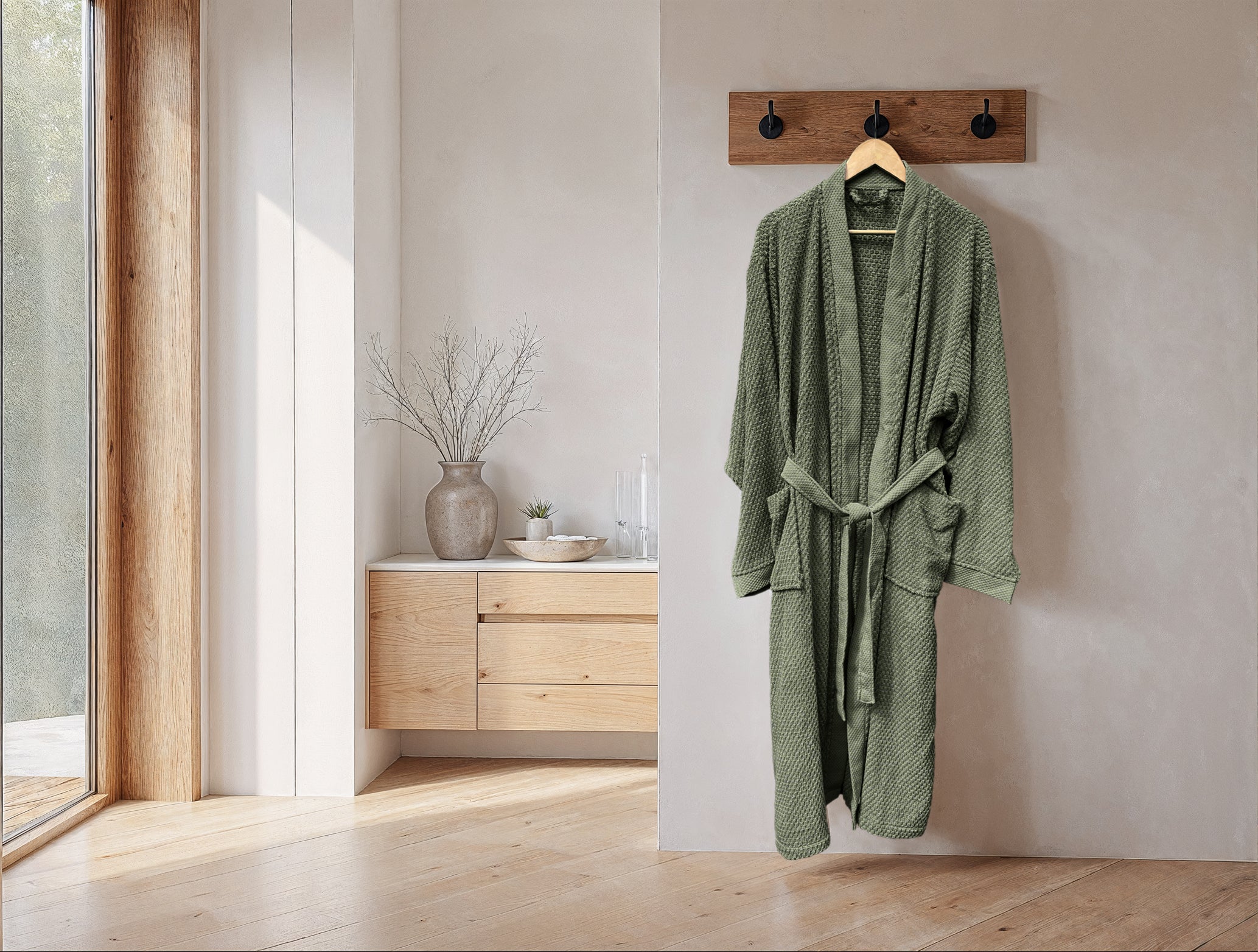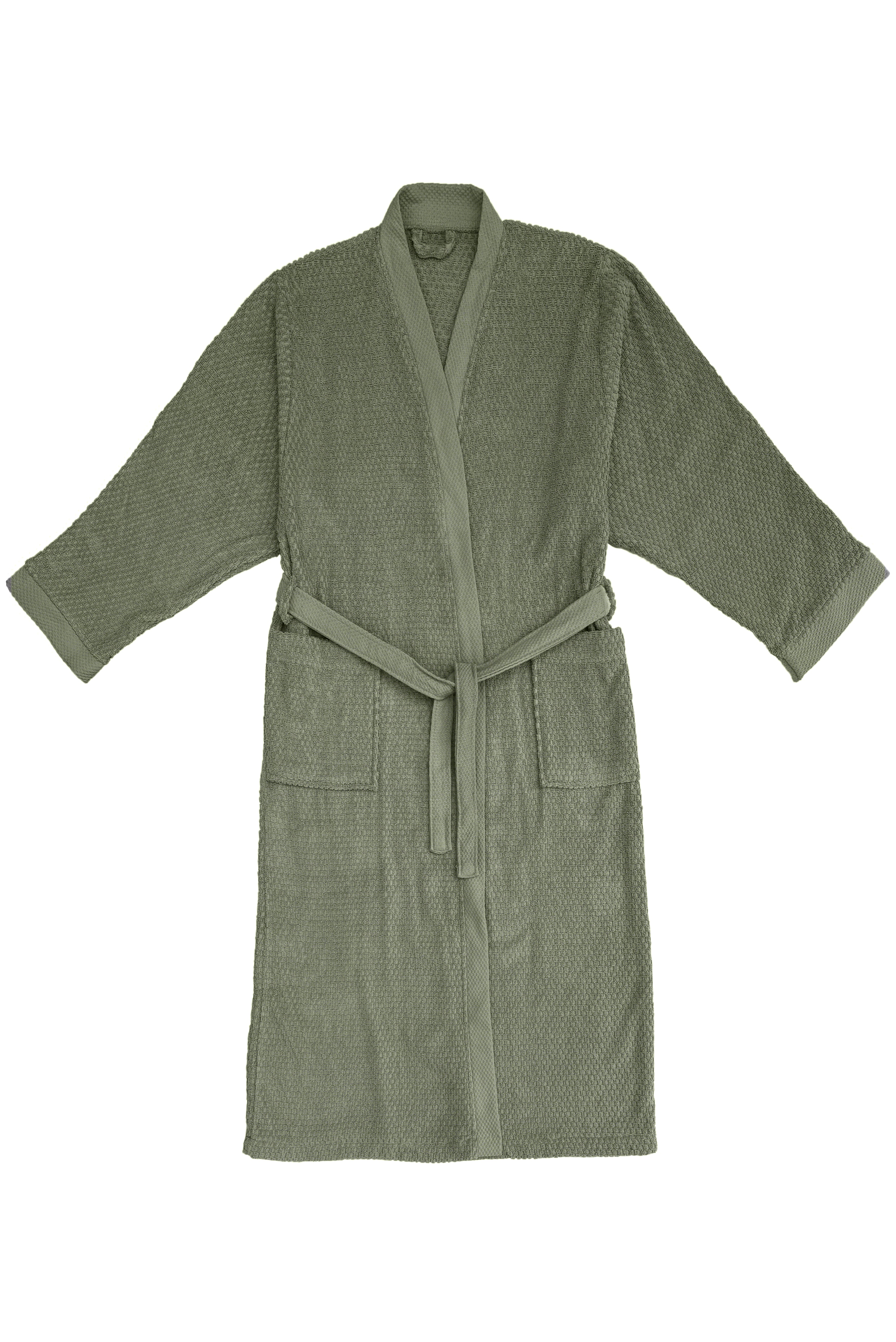 In de Grant badjas van Heckettlane in Army Green geniet je van puur comfort en zachte warmte. Gemaakt van 100% katoen voelt hij ademend en zacht aan, ideaal om in te ontspannen na een douche of tijdens een rustig moment thuis. Met een comfortabele pasvorm en handige zakken is deze badjas een stijlvolle toevoeging die duurzaamheid en luxe moeiteloos combineert. Elke dag opnieuw ervaar je zo het fijne comfort van Heckettlane.