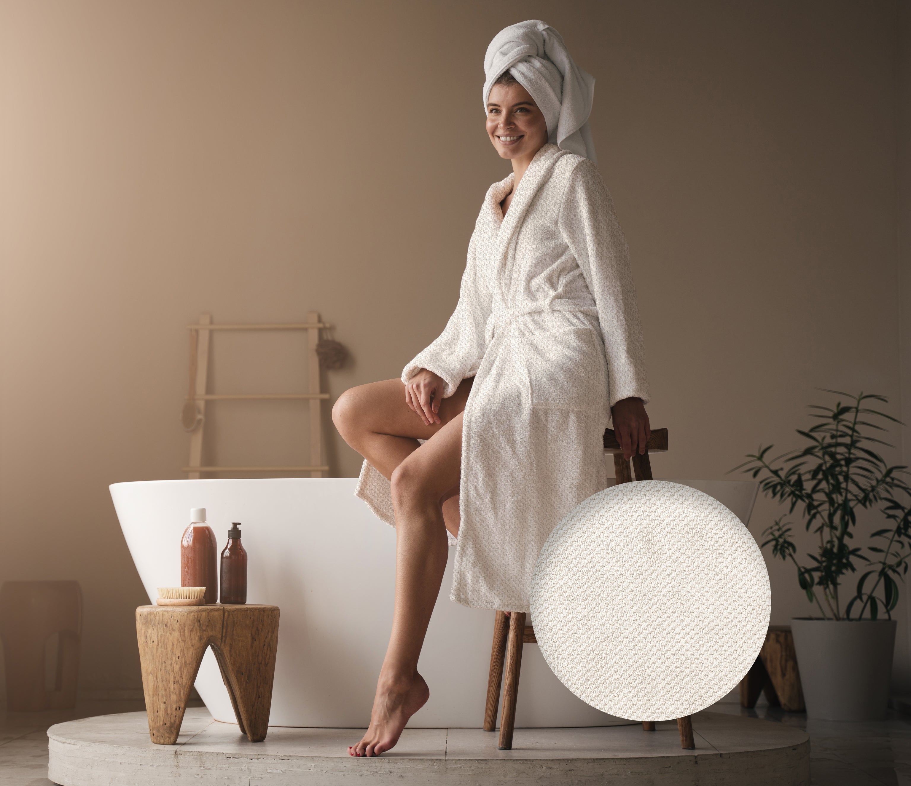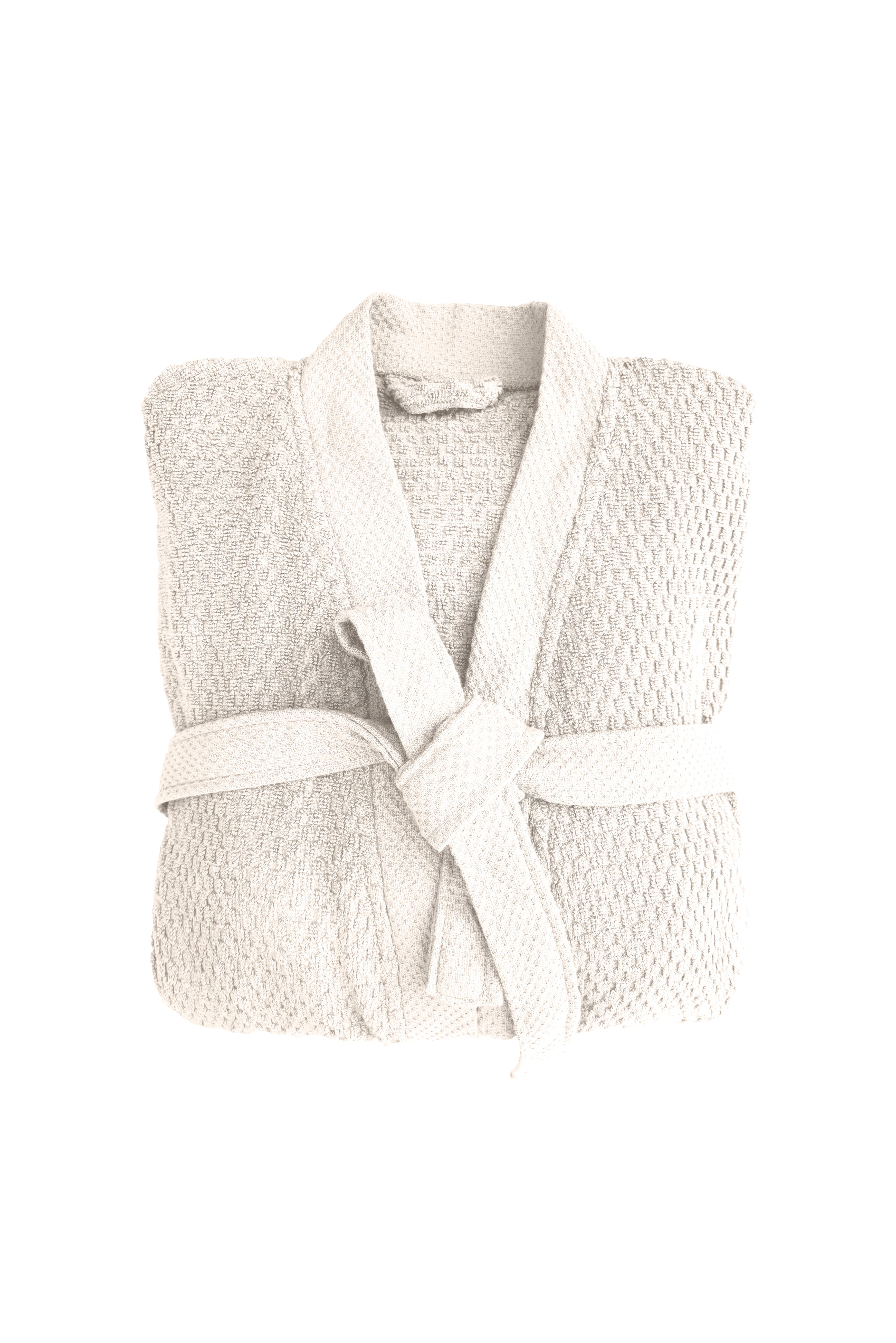 De Grant badjas van Heckettlane in Off-white is gemaakt van 100% katoen en voelt heerlijk zacht aan. Het ademende materiaal zorgt voor comfortabel draagplezier, ideaal om in te ontspannen na het douchen of tijdens een rustig moment thuis. Met zijn praktische zakken en ontspannen pasvorm is deze badjas een stijlvolle toevoeging aan je ochtend- en avondroutine.