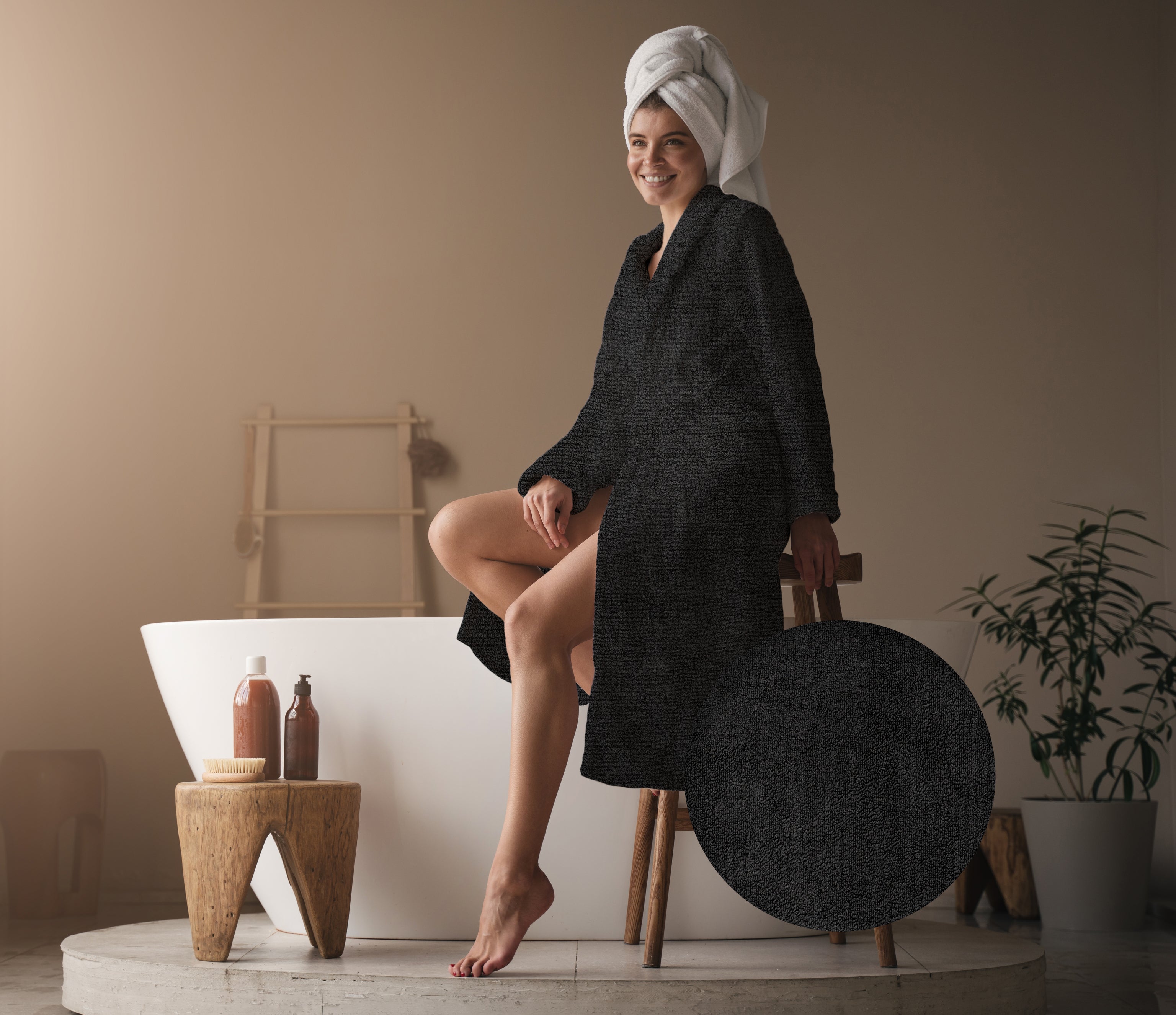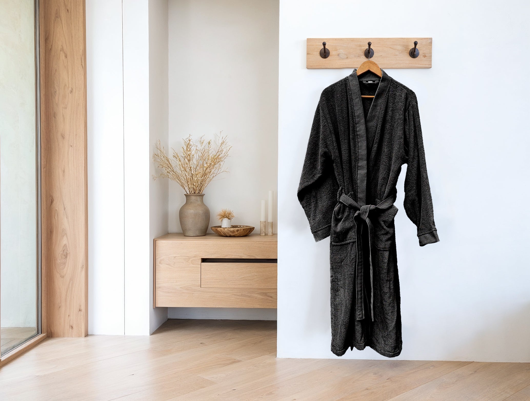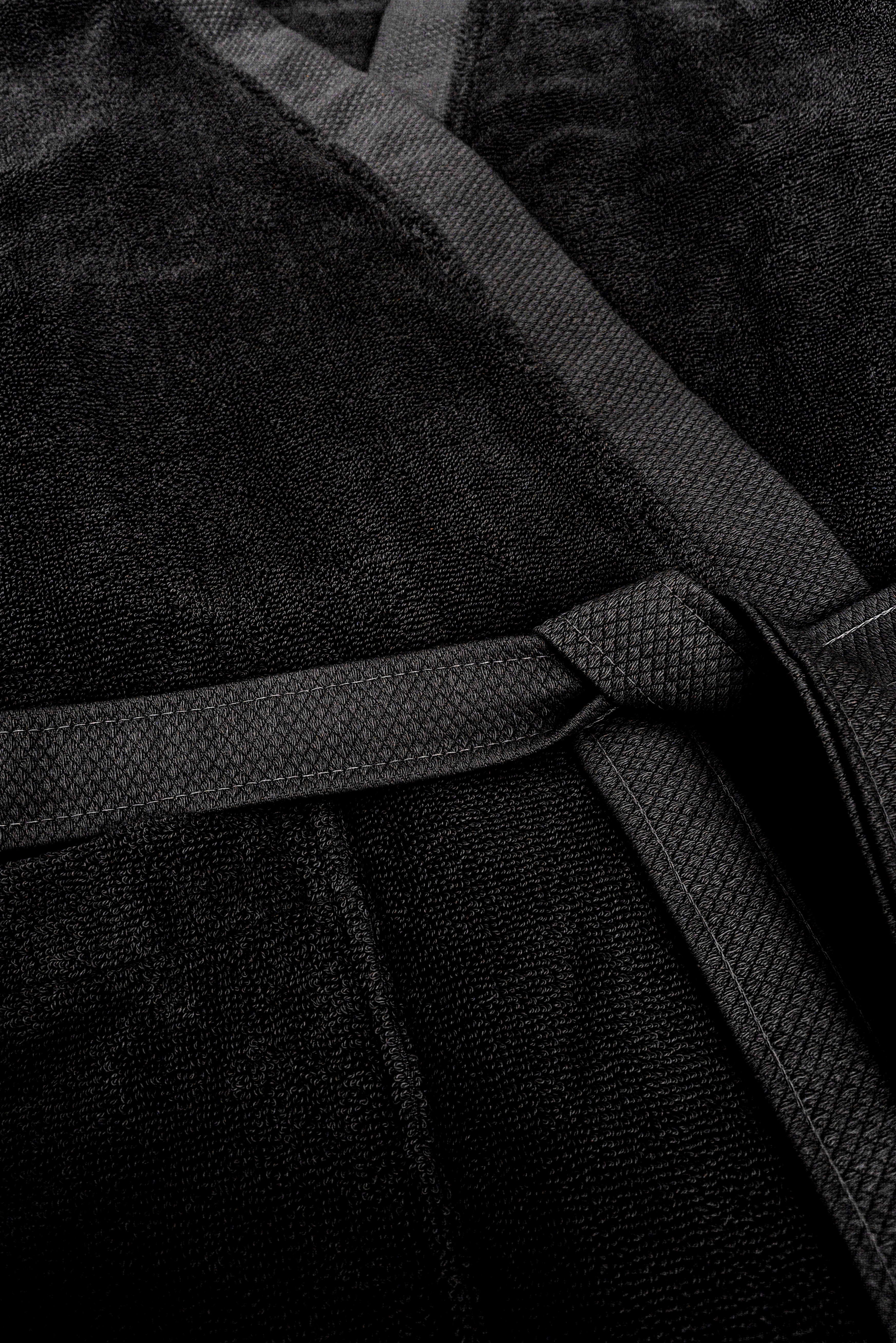 De Premium badjas van Heckettlane in tijdloos Night Black biedt je ultiem comfort en warmte. Gemaakt van 100% hoogwaardig katoen, voelt de badjas zacht en ademend aan, ideaal voor ontspannende momenten thuis of na het douchen. Dankzij de duurzame stof blijft hij ook na veel wassen mooi en comfortabel. Met een perfecte pasvorm en handige zakken combineert deze badjas stijl met functionaliteit. Ervaar elke dag het luxe wellnessgevoel van Heckettlane met deze comfortabele en elegante badjas.