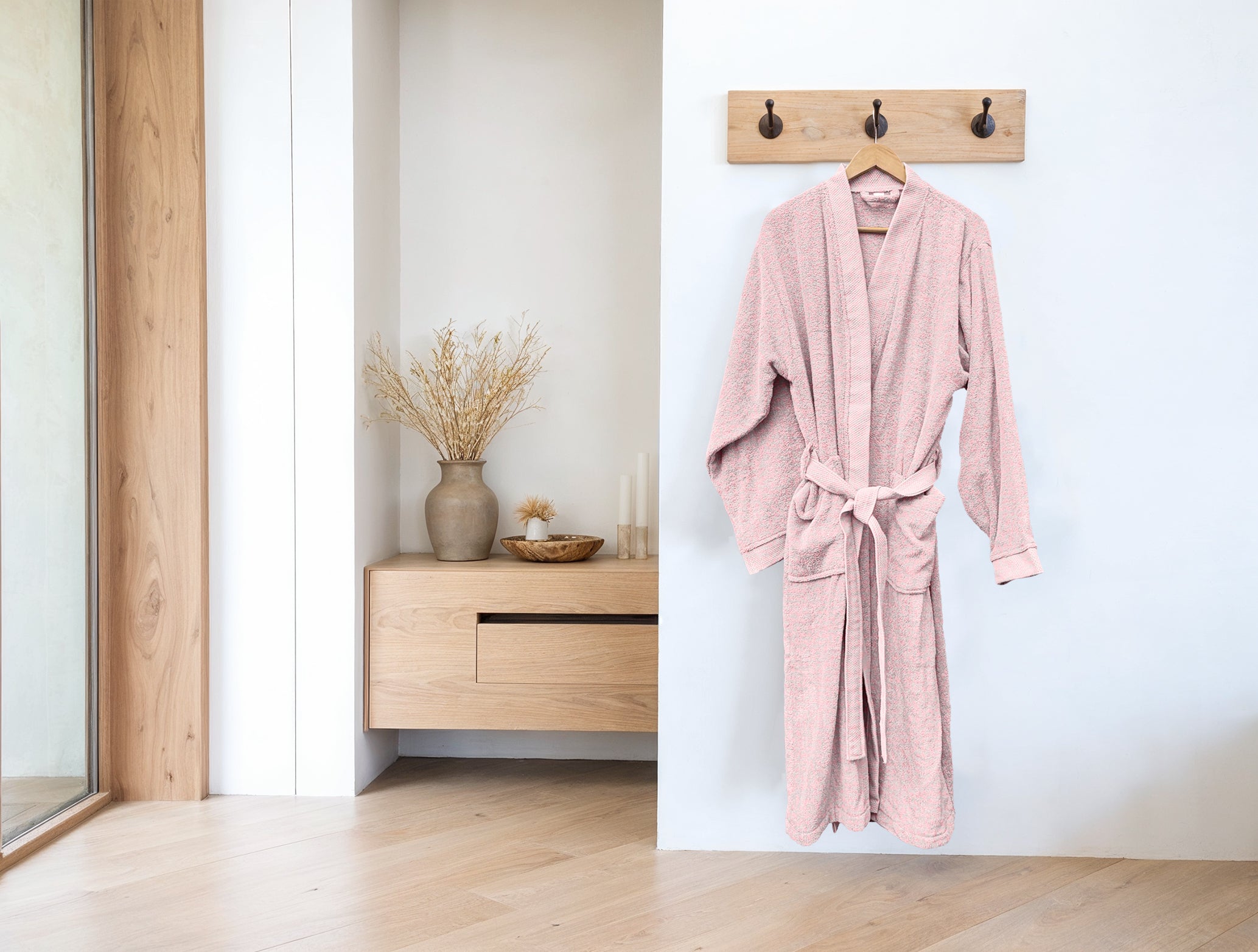 De Premium badjas van Heckettlane in zachte Shady Pink combineert comfort met een subtiele vrouwelijke touch. Gemaakt van 100% hoogwaardig katoen voelt deze badjas heerlijk zacht en ademend aan, ideaal voor ontspannen momenten thuis of na het douchen. De duurzame stof blijft mooi en comfortabel, ook na veel wassen. Met een perfecte pasvorm en praktische zakken is deze badjas een elegante en functionele aanvulling op je garderobe. Geniet elke dag van het luxe wellnessgevoel dat Heckettlane je biedt.