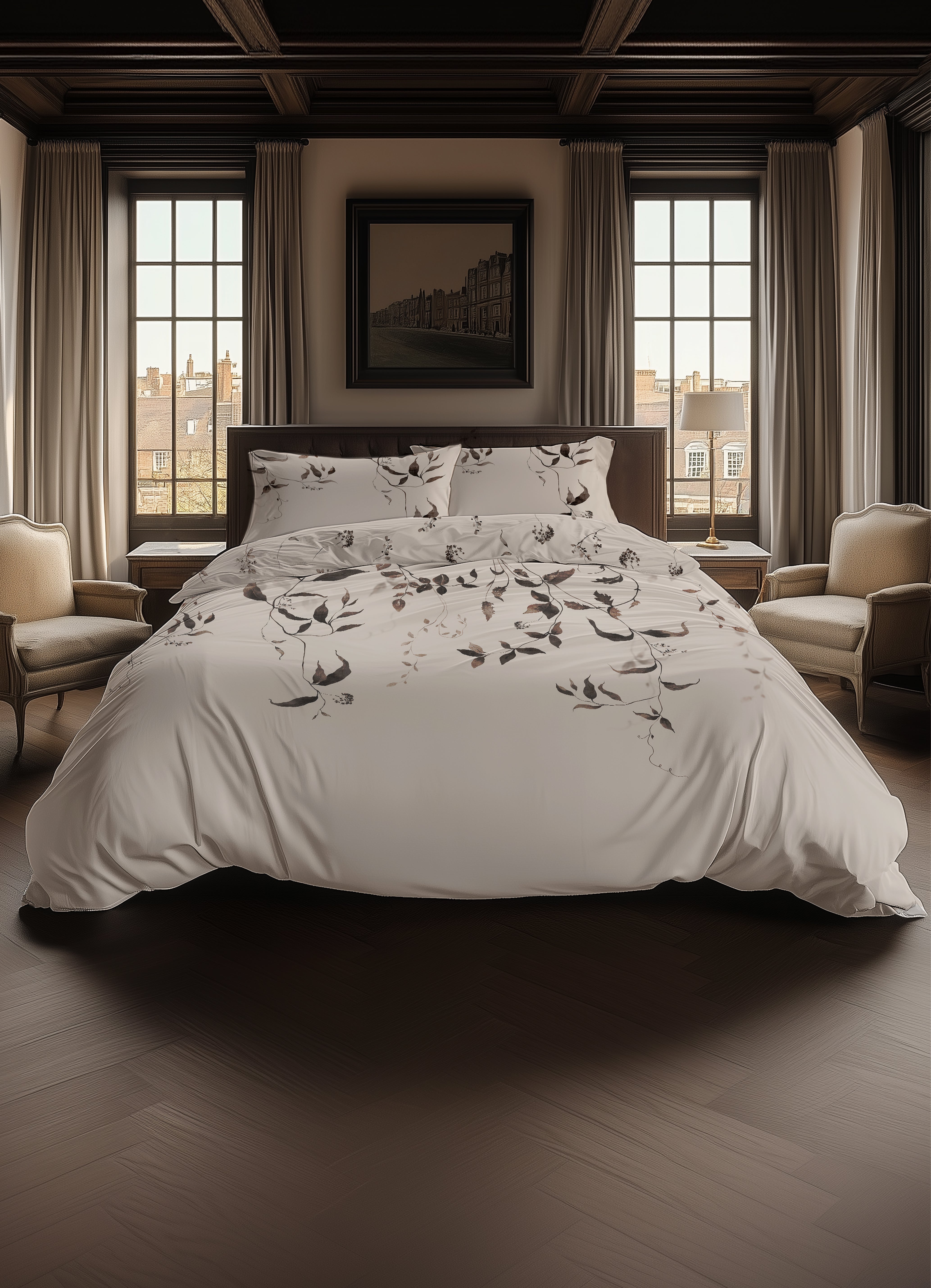 Het Heckettlane Bennet dekbedovertrek combineert een zachte beige achtergrond met donkere, rijke bladeren voor een natuurlijke en sfeervolle uitstraling. Gemaakt van 100% katoen-satijn voelt het heerlijk zacht en comfortabel aan, waardoor je elke nacht geniet van een rustgevende en comfortabele slaapervaring. Dit stijlvolle ontwerp brengt warmte en karakter in jouw slaapkamer.