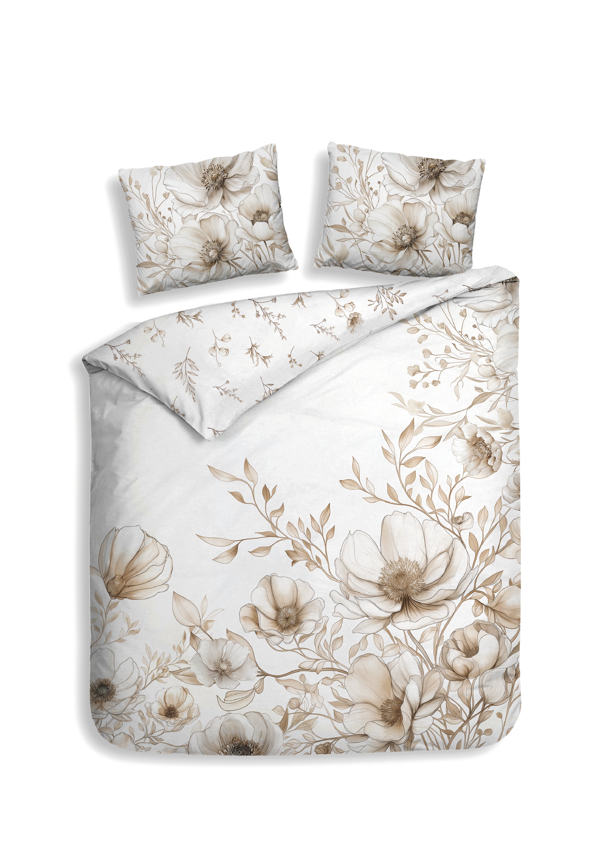 Het Giotto dekbedovertrek van Heckettlane brengt een frisse en elegante uitstraling met zachte beige bloemen op een stralend witte achtergrond. Gemaakt van 100% katoen-satijn voelt het heerlijk zacht en soepel aan, en zorgt het voor een comfortabele en luxe nachtrust. Dit tijdloze design geeft je slaapkamer een lichte, natuurlijke sfeer waar je iedere dag ontspannen en vol energie begint.