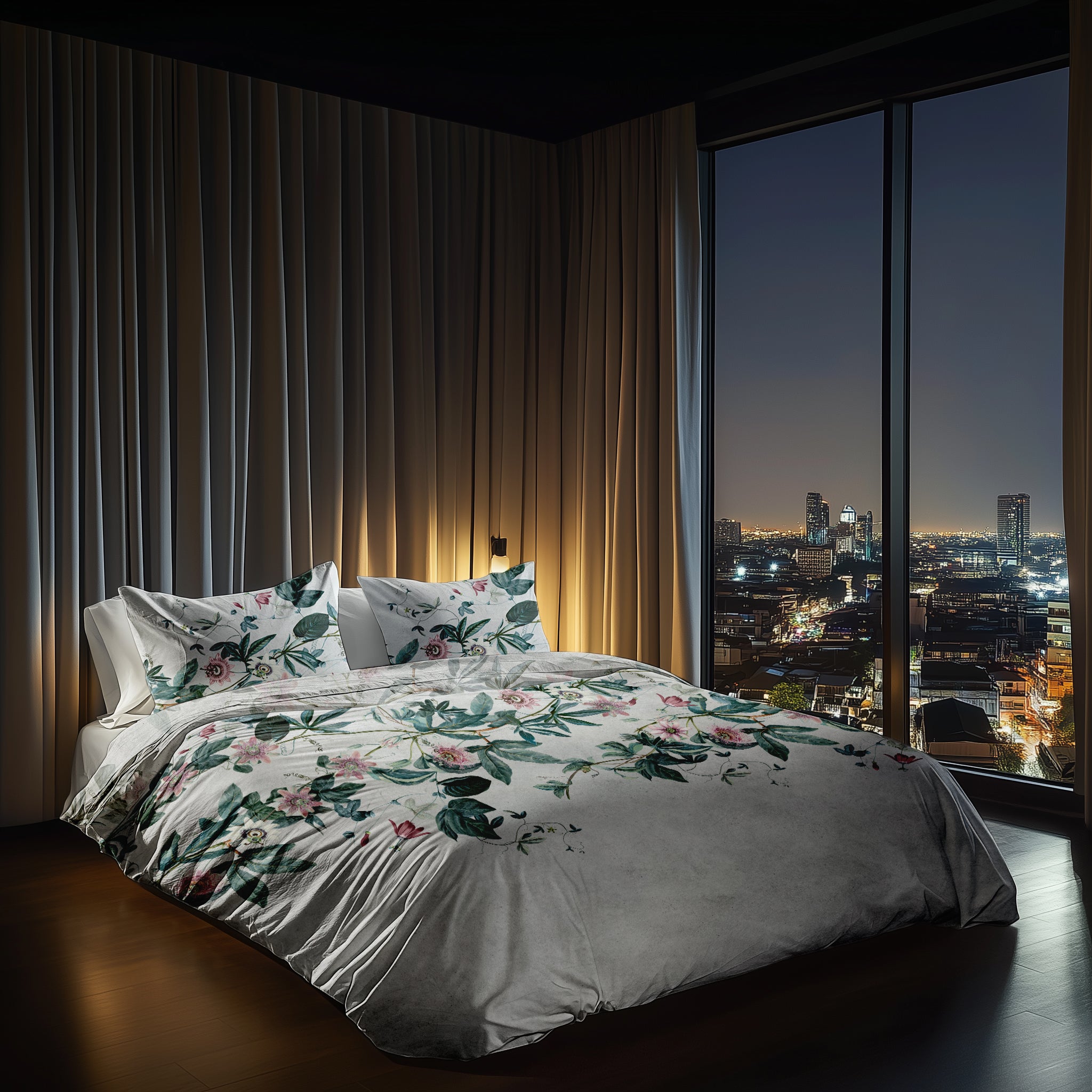 Het Heckettlane Kanya dekbedovertrek ademt rust en verfijning met een subtiele bloemenprint op een zachte, neutrale achtergrond. Gemaakt van 100% katoen-satijn voelt het zijdezacht en soepel aan, en zorgt het voor een comfortabele, ontspannen nachtrust. Dit tijdloze en elegante design brengt een rustige, natuurlijke sfeer in je slaapkamer waar je elke avond met plezier onder kruipt.