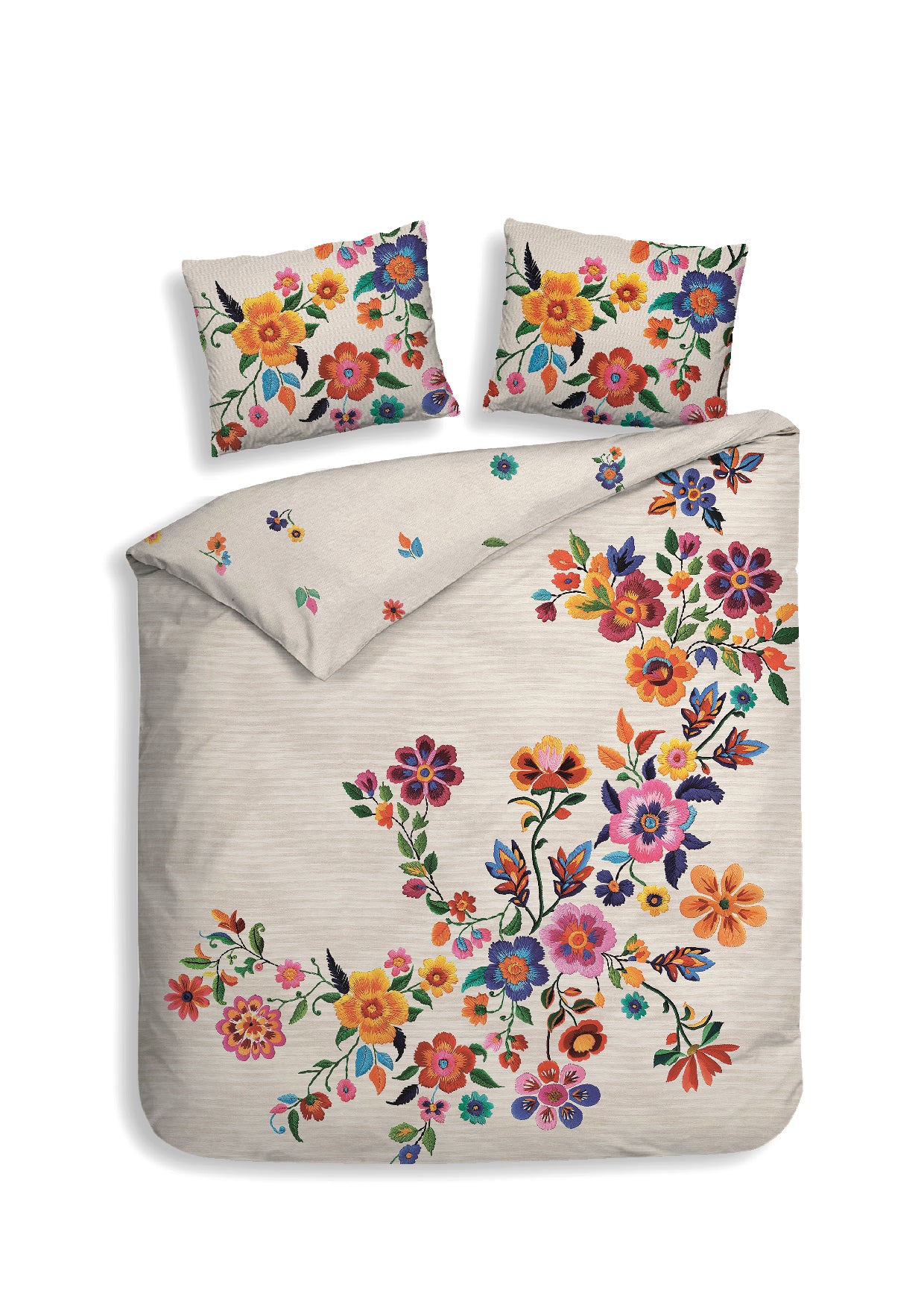 Het Luz dekbedovertrek van Heckettlane brengt kleur en leven in je slaapkamer met een zachte beige achtergrond vol vrolijk gekleurde bloemen. Gemaakt van 100% katoen-satijn voelt het heerlijk zacht en soepel aan, en zorgt het voor een comfortabele nachtrust. Dit speelse en toch stijlvolle ontwerp geeft je slaapkamer een frisse, positieve uitstraling waar je iedere dag weer blij van wordt.