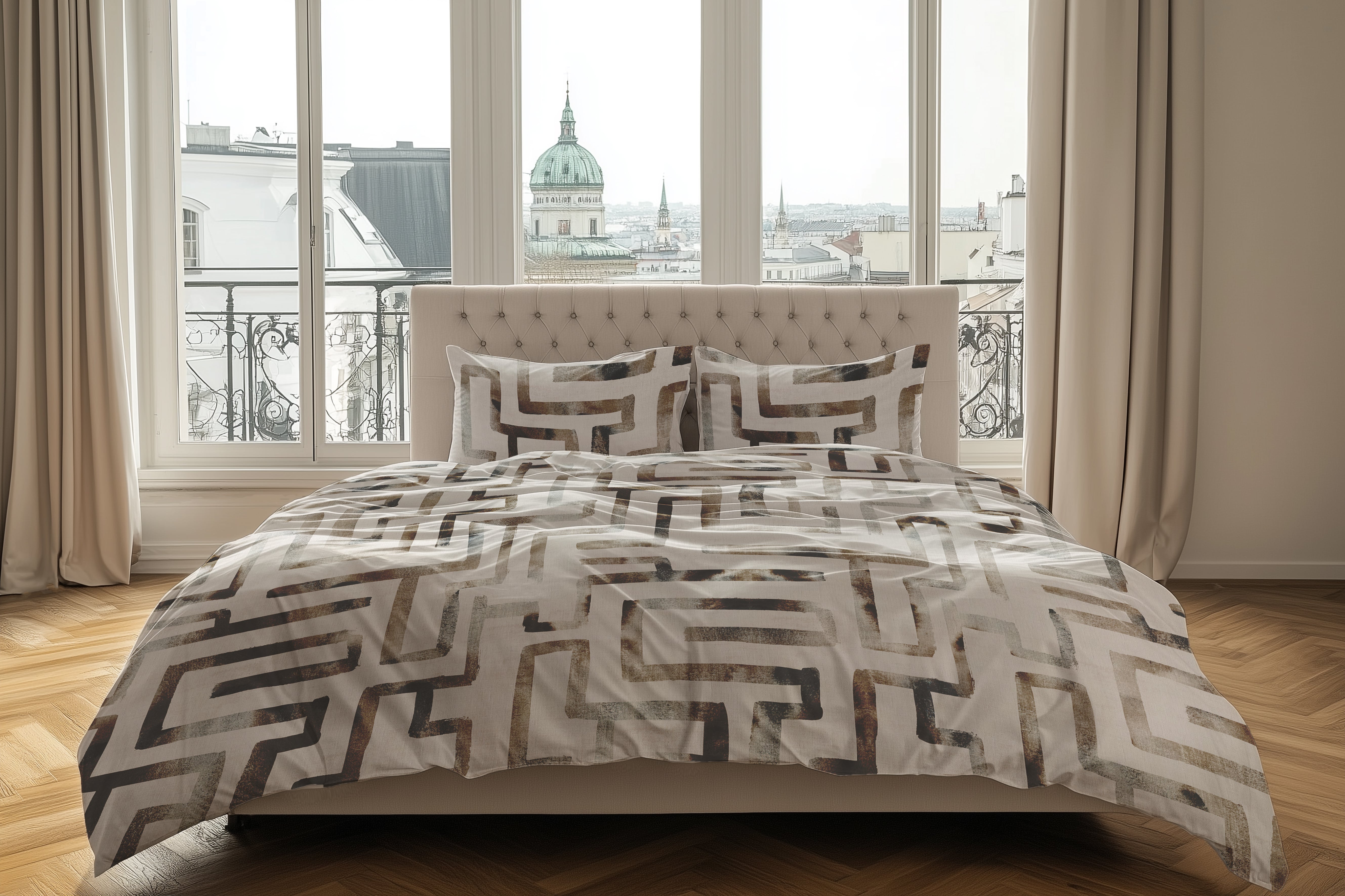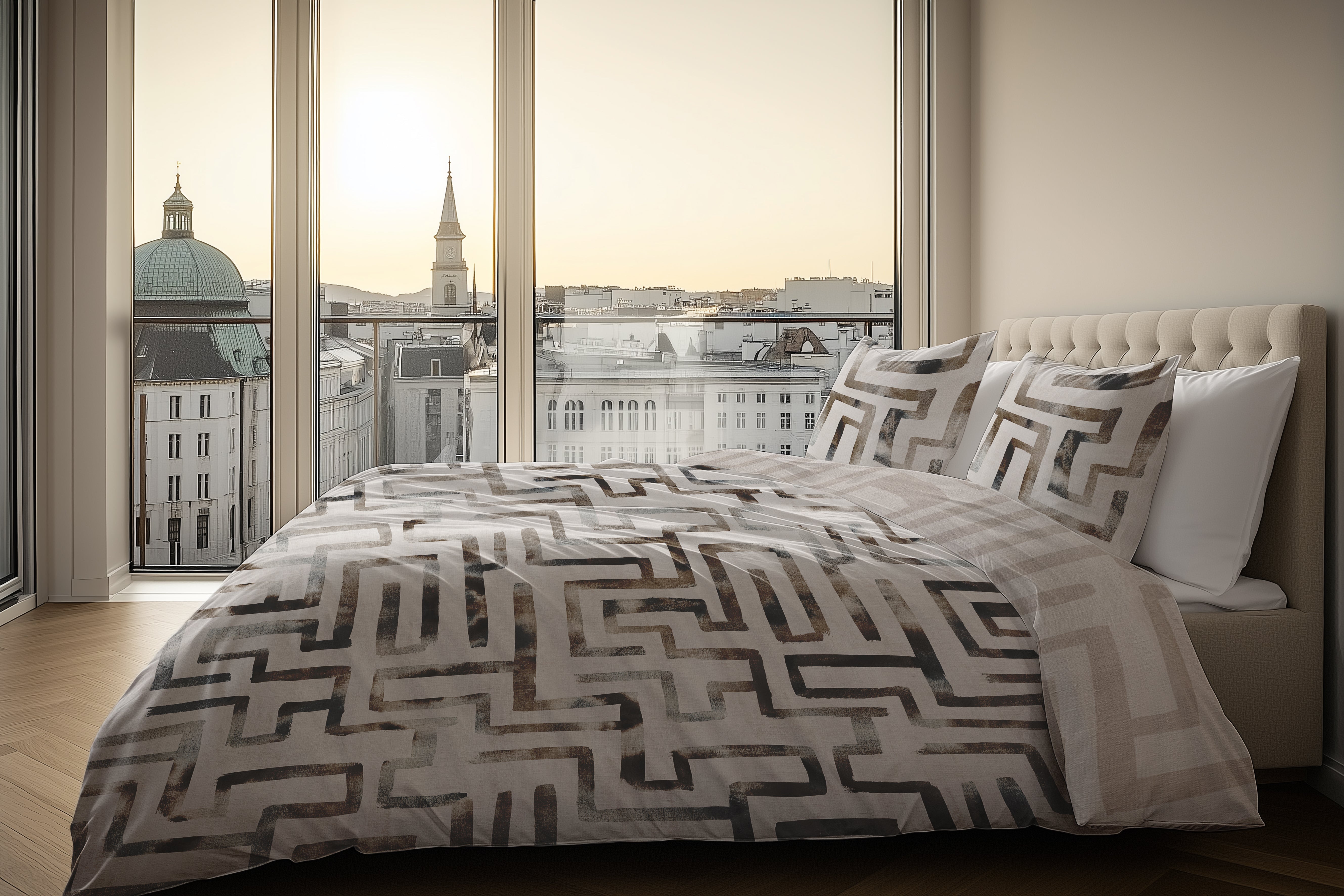 Breng stijl en karakter in je slaapkamer met het Melis dekbedovertrek van Heckettlane in beige. Dit 100% katoen-satijn dekbedovertrek valt op door het opvallende abstracte strepenpatroon, dat een moderne en eigentijdse uitstraling geeft. De warme beige ondertoon zorgt voor een rustige basis en combineert comfort met design.