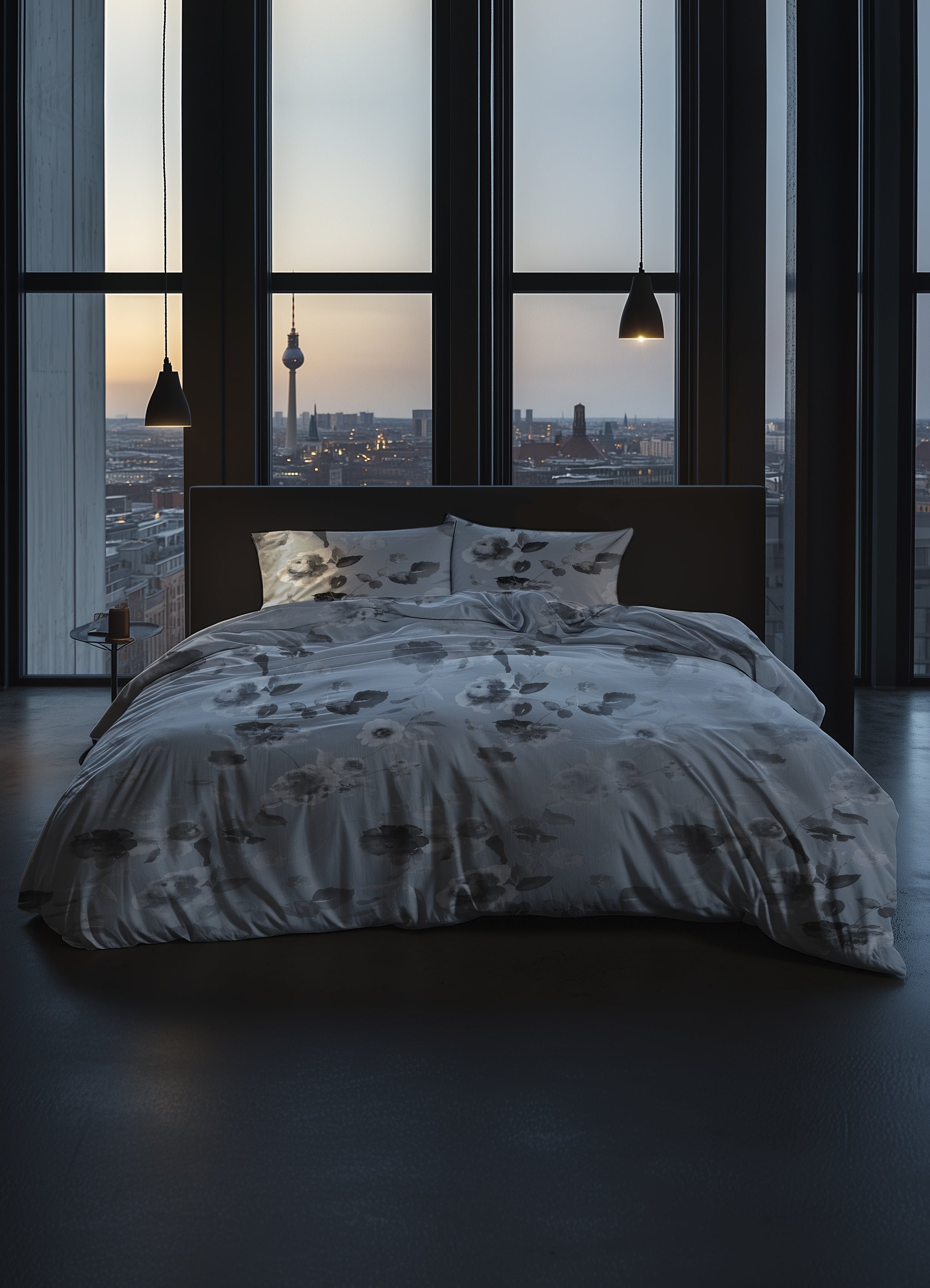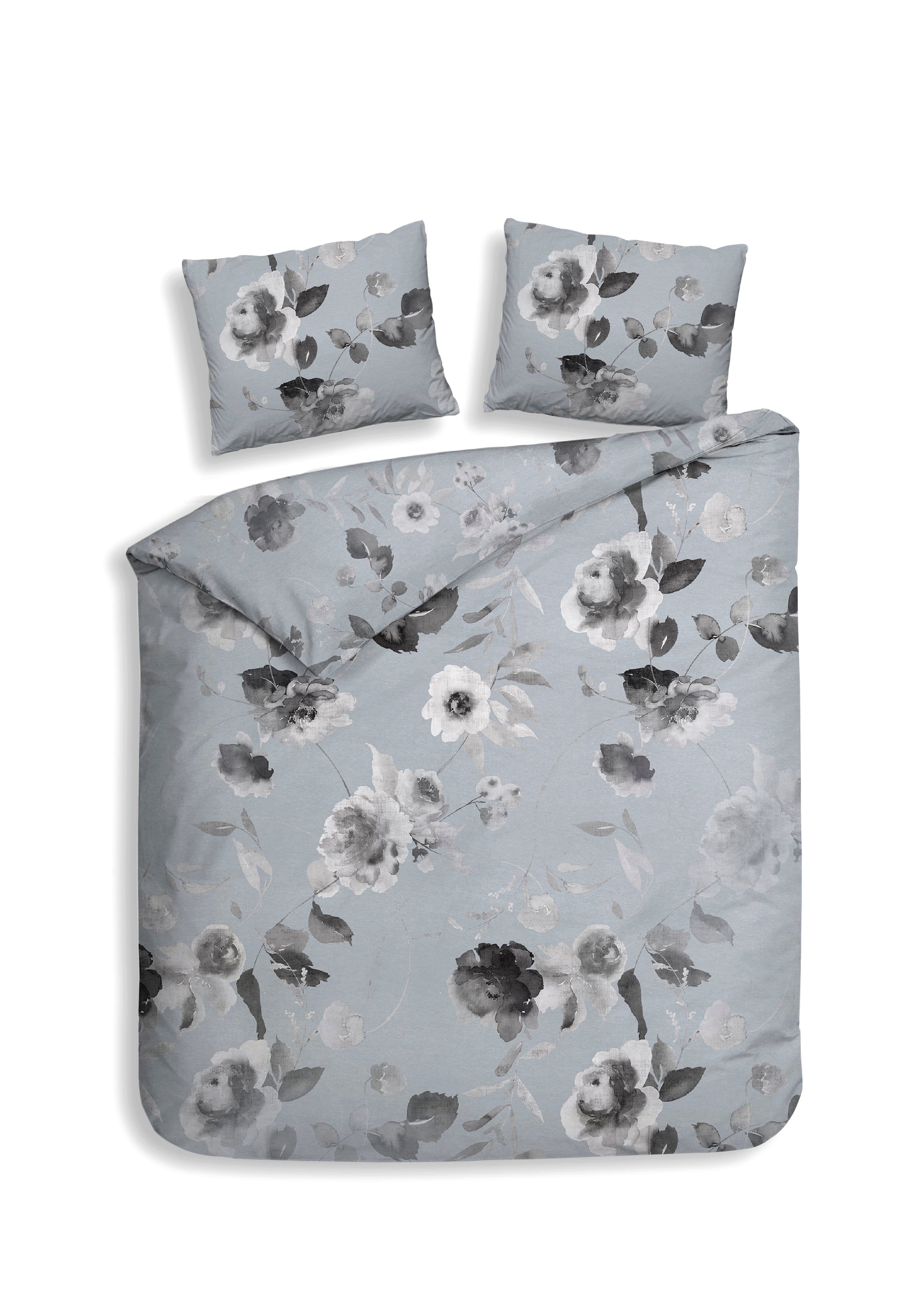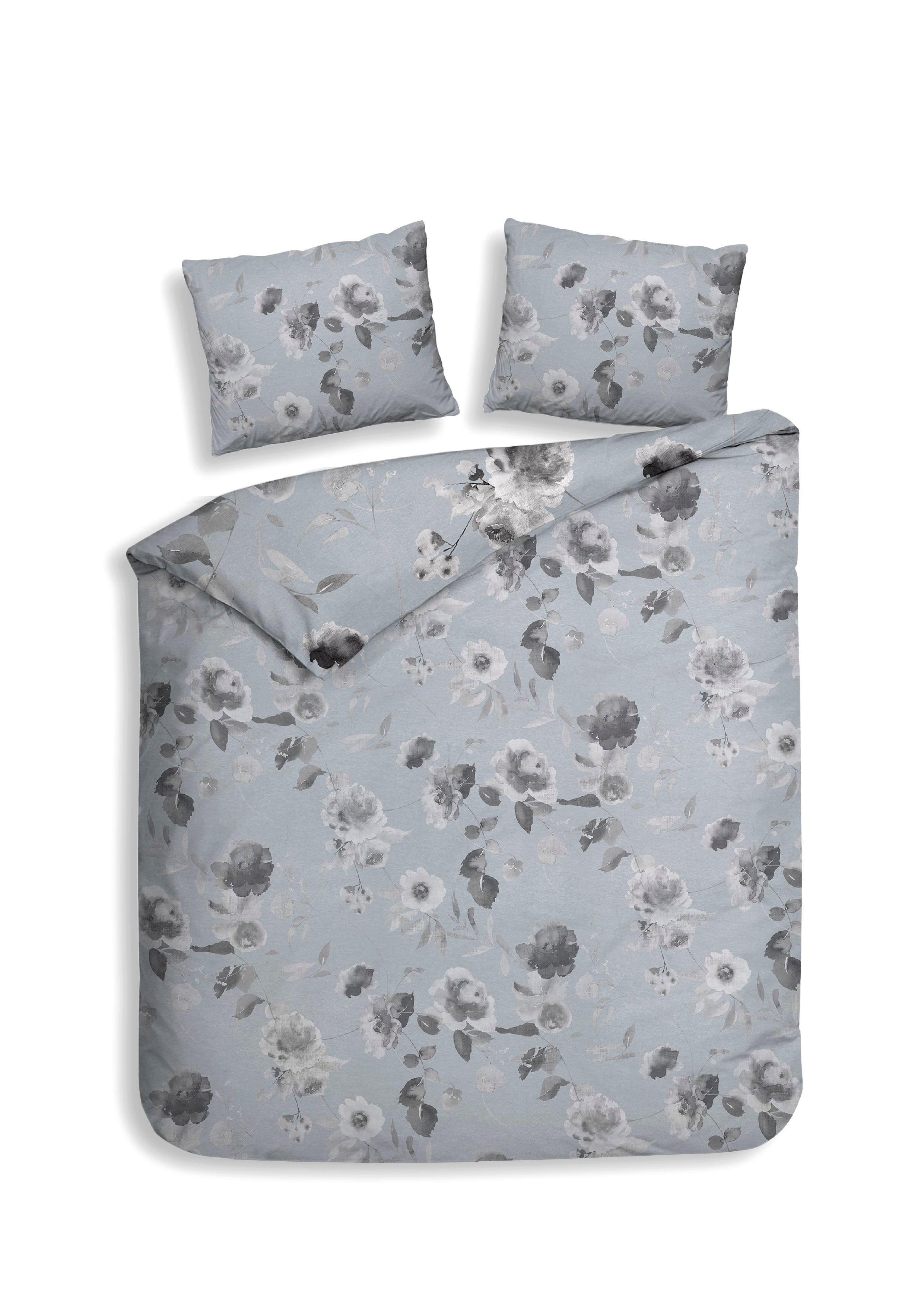 Het Mira dekbedovertrek van Heckettlane straalt rust en zachtheid uit met een licht blauwgrijze achtergrond en zachte grijze bloemen. Gemaakt van 100% katoen-satijn voelt het heerlijk soepel en comfortabel aan, waardoor je iedere nacht ontspannen en stijlvol slaapt. Dit subtiele en tijdloze ontwerp geeft je slaapkamer een serene en elegante sfeer.